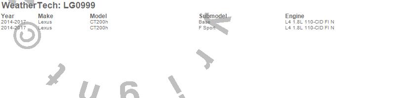 Below is an abbreviated list of applications for the LampGard.CT200h, Lexus, 2017, 2016, 2015, 2014