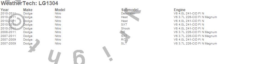 Below is an abbreviated list of applications for the LampGard.Nitro, Dodge, 2011, 2010, 2009, 2008, 2007