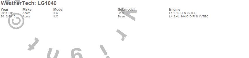 Below is an abbreviated list of applications for the LampGard.ILX, Acura, 2018, 2017, 2016