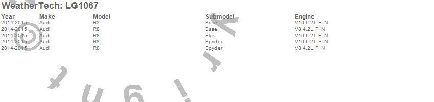 Below is an abbreviated list of applications for the LampGard.R8, Audi, 2015, 2014