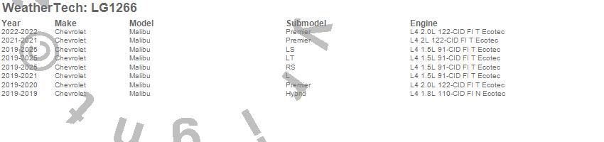 Below is an abbreviated list of applications for the LampGard.Malibu, Chevrolet, 2025, 2024, 2023, 2022, 2021, 2020, 2019
