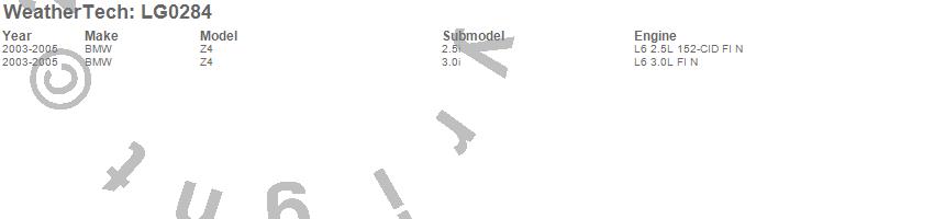 Below is an abbreviated list of applications for the LampGard.Z4, BMW, 2005, 2004, 2003