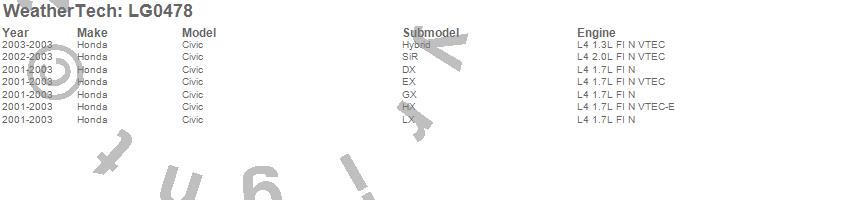 Below is an abbreviated list of applications for the LampGard.Civic, Honda, 2003, 2002, 2001