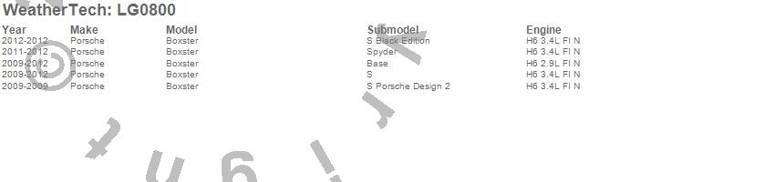Below is an abbreviated list of applications for the LampGard.Boxster, Porsche, 2012, 2011, 2010, 2009