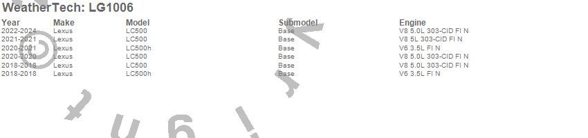 Below is an abbreviated list of applications for the LampGard.LC500, LC500h, Lexus, 2024, 2023, 2022, 2021, 2020, 2018