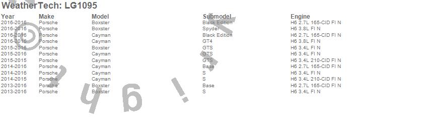 Below is an abbreviated list of applications for the LampGard.Boxster, Cayman, Porsche, 2016, 2015, 2014, 2013