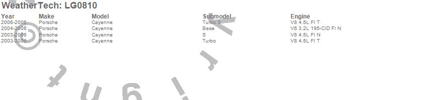 Below is an abbreviated list of applications for the LampGard.Cayenne, Porsche, 2006, 2005, 2004, 2003