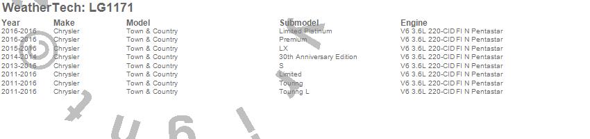 Below is an abbreviated list of applications for the LampGard.Town & Country, Chrysler, 2016, 2015, 2014, 2013, 2012, 2011