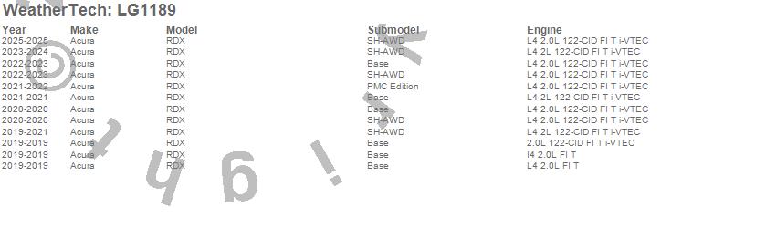 Below is an abbreviated list of applications for the LampGard.RDX, Acura, 2026, 2025, 2024, 2023, 2022, 2021, 2020, 2019