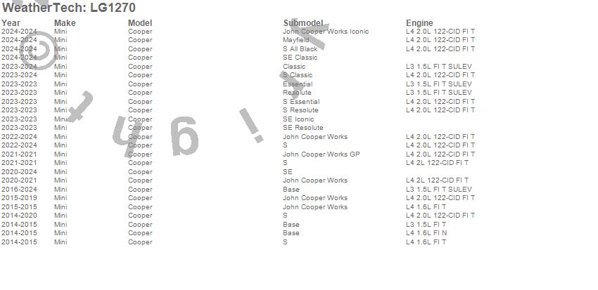 Below is an abbreviated list of applications for the LampGard.Cooper, Mini, 2026, 2025, 2024, 2023, 2022, 2021, 2020, 2019, 2018, 2017, 2016, 2015, 2014