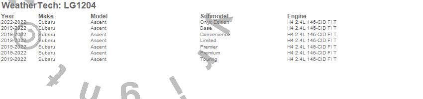 Below is an abbreviated list of applications for the LampGard.Ascent, Subaru, 2022, 2021, 2020, 2019