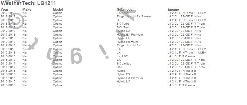 Below is an abbreviated list of applications for the LampGard.Optima, Kia, 2018, 2017, 2016