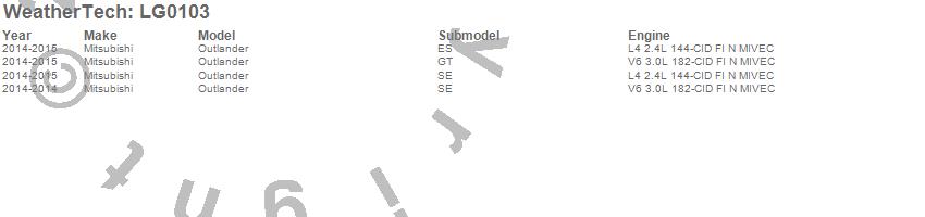 Below is an abbreviated list of applications for the LampGard.Outlander, Mitsubishi, 2015, 2014