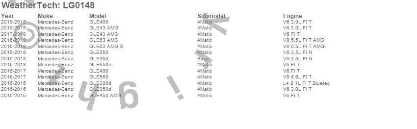 Below is an abbreviated list of applications for the LampGard.GLE300d, GLE350, GLE350d, GLE400, GLE43 AMG, GLE450 AMG, GLE550, GLE550e, GLE63 AMG, GLE63 AMG S, Mercedes-Benz, 2019, 2018, 2017, 2016