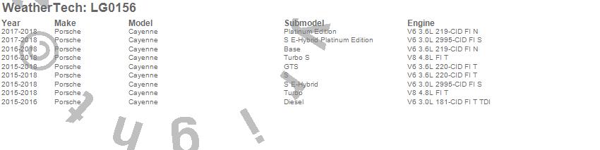Below is an abbreviated list of applications for the LampGard.Cayenne, Porsche, 2018, 2017, 2016, 2015
