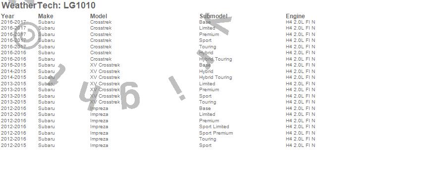 Below is an abbreviated list of applications for the LampGard.Crosstrek, Impreza, XV Crosstrek, Subaru, 2017, 2016, 2015, 2014, 2013, 2012