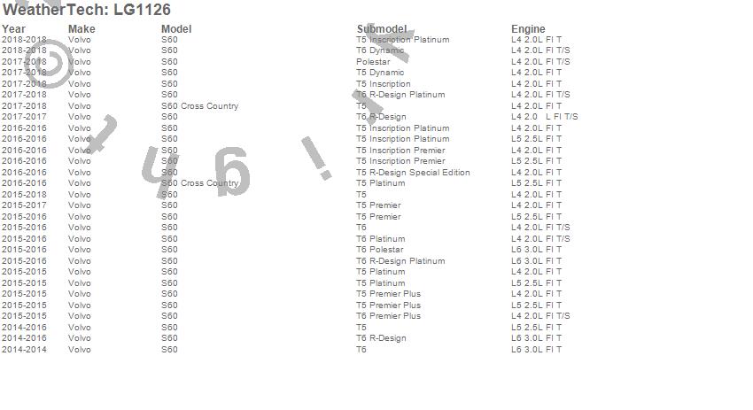 Below is an abbreviated list of applications for the LampGard.S60, S60 Cross Country, Volvo, 2018, 2017, 2016, 2015, 2014