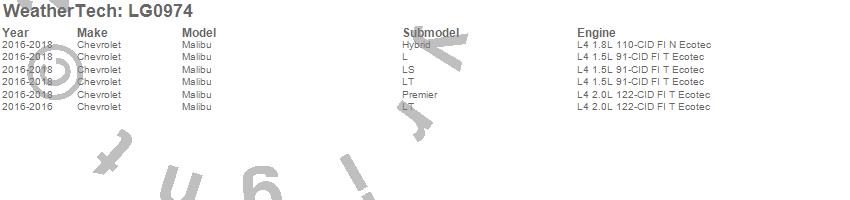 Below is an abbreviated list of applications for the LampGard.Malibu, Chevrolet, 2018, 2017, 2016