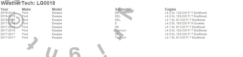 Below is an abbreviated list of applications for the LampGard.Escape, Ford, 2019, 2018, 2017