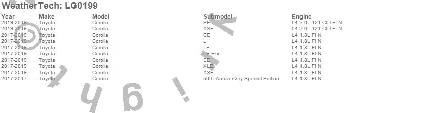 Below is an abbreviated list of applications for the LampGard.Corolla, Toyota, 2019, 2018, 2017