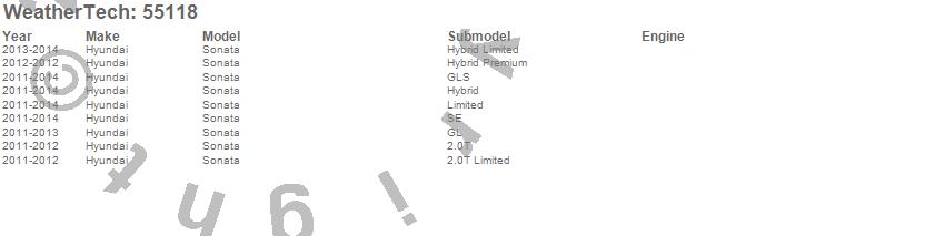 Below is an abbreviated list of applications for the Low Profile Aerodynamic Hood Protector.Sonata, Hyundai, 2014, 2013, 2012, 2011