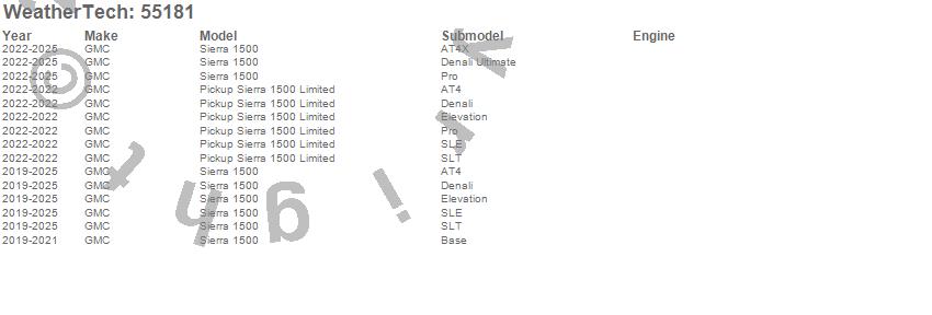 Below is an abbreviated list of applications for the Low Profile Aerodynamic Hood Protector.Pickup Sierra 1500 Limited, Sierra 1500, GMC, 2025, 2024, 2023, 2022, 2021, 2020, 2019