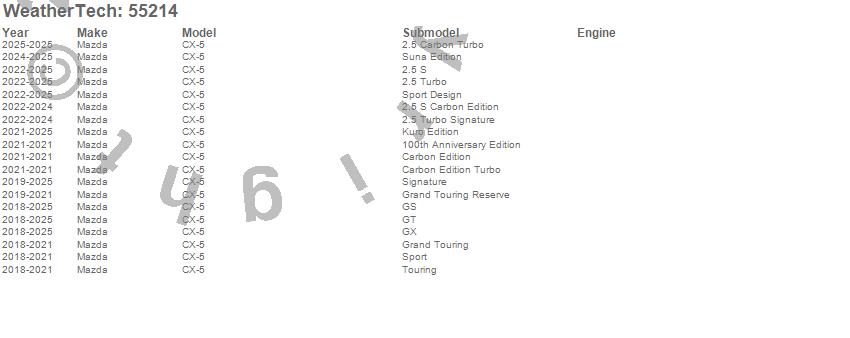 Below is an abbreviated list of applications for the Low Profile Aerodynamic Hood Protector.CX-5, Mazda, 2025, 2024, 2023, 2022, 2021, 2020, 2019, 2018