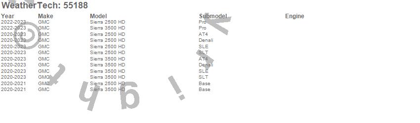 Below is an abbreviated list of applications for the Low Profile Aerodynamic Hood Protector.Sierra 2500 HD, Sierra 3500 HD, GMC, 2023, 2022, 2021, 2020
