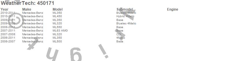 Below is an abbreviated list of applications for the FloorLiner DigitalFit.ML320, ML350, ML450, ML500, ML550, ML63 AMG, Mercedes-Benz, 2011, 2010, 2009, 2008, 2007, 2006
