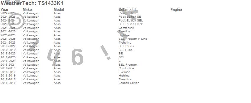 Below is an abbreviated list of applications for the WeatherTech SunShade Full Vehicle Kit.Atlas, Volkswagen, 2025, 2024, 2023, 2022, 2021, 2020, 2019, 2018