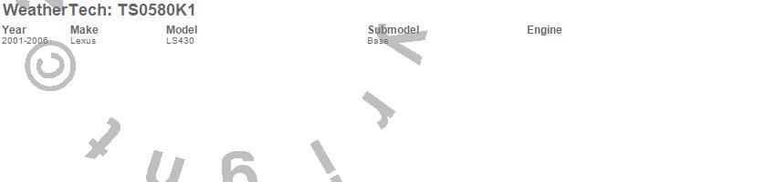 Below is an abbreviated list of applications for the WeatherTech SunShade Full Vehicle Kit.LS430, Lexus, 2006, 2005, 2004, 2003, 2002, 2001