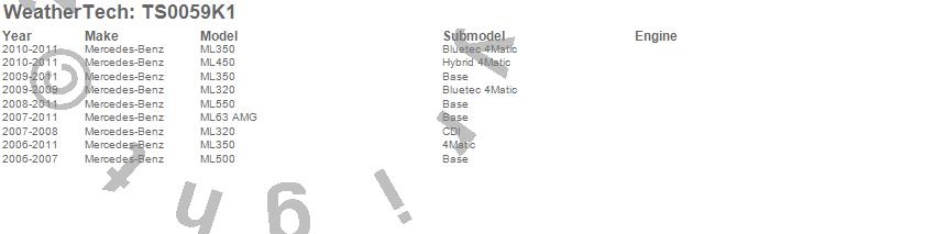 Below is an abbreviated list of applications for the WeatherTech SunShade Full Vehicle Kit.ML320, ML350, ML450, ML500, ML550, ML63 AMG, Mercedes-Benz, 2011, 2010, 2009, 2008, 2007, 2006