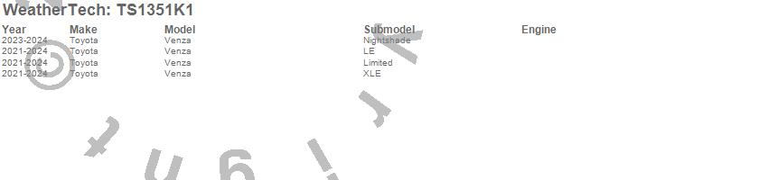 Below is an abbreviated list of applications for the WeatherTech SunShade Full Vehicle Kit.Venza, Toyota, 2024, 2023, 2022, 2021