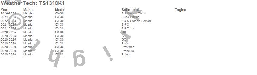 Below is an abbreviated list of applications for the WeatherTech SunShade Full Vehicle Kit.CX-30, Mazda, 2025, 2024, 2023, 2022, 2021, 2020