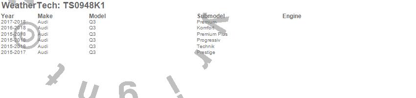 Below is an abbreviated list of applications for the WeatherTech SunShade Full Vehicle Kit.Q3, Audi, 2018, 2017, 2016, 2015