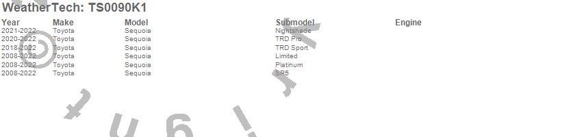 Below is an abbreviated list of applications for the WeatherTech SunShade Full Vehicle Kit.Sequoia, Toyota, 2022, 2021, 2020, 2019, 2018, 2017, 2016, 2015, 2014, 2013, 2012, 2011, 2010, 2009, 2008