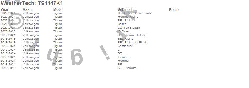 Below is an abbreviated list of applications for the WeatherTech SunShade Full Vehicle Kit.Tiguan, Volkswagen, 2024, 2023, 2022, 2021, 2020, 2019, 2018