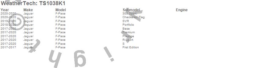 Below is an abbreviated list of applications for the WeatherTech SunShade Full Vehicle Kit.F-Pace, Jaguar, 2020, 2019, 2018, 2017