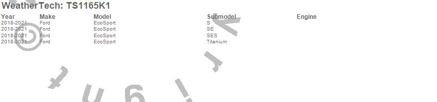 Below is an abbreviated list of applications for the WeatherTech SunShade Full Vehicle Kit.EcoSport, Ford, 2021, 2020, 2019, 2018