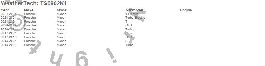 Below is an abbreviated list of applications for the WeatherTech SunShade Full Vehicle Kit.Macan, Porsche, 2026, 2024, 2023, 2022, 2021, 2020, 2019, 2018, 2017, 2016, 2015
