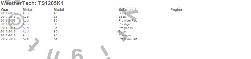 Below is an abbreviated list of applications for the WeatherTech SunShade Full Vehicle Kit.A6, S6, Audi, 2018, 2017, 2016, 2015, 2014, 2013, 2012