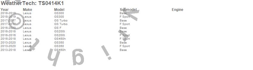 Below is an abbreviated list of applications for the WeatherTech SunShade Full Vehicle Kit.GS F, GS Turbo, GS200t, GS300, GS350, GS450h, Lexus, 2020, 2019, 2018, 2017, 2016, 2015, 2014, 2013