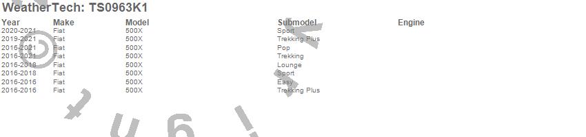 Below is an abbreviated list of applications for the WeatherTech SunShade Full Vehicle Kit.500X, Fiat, 2021, 2020, 2019, 2018, 2017, 2016