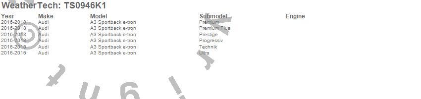 Below is an abbreviated list of applications for the WeatherTech SunShade Full Vehicle Kit.A3 Sportback e-tron, Audi, 2018, 2017, 2016