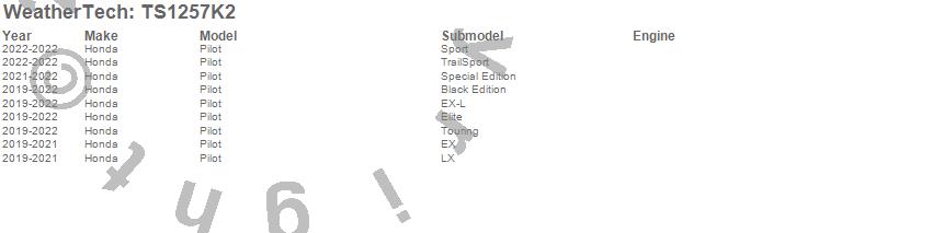 Below is an abbreviated list of applications for the WeatherTech SunShade Full Vehicle Kit.Pilot, Honda, 2022, 2021, 2020, 2019