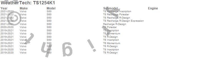Below is an abbreviated list of applications for the WeatherTech SunShade Full Vehicle Kit.S60, Volvo, 2022, 2021, 2020, 2019