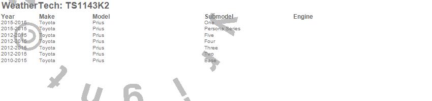 Below is an abbreviated list of applications for the WeatherTech SunShade Full Vehicle Kit.Prius, Toyota, 2015, 2014, 2013, 2012, 2011, 2010