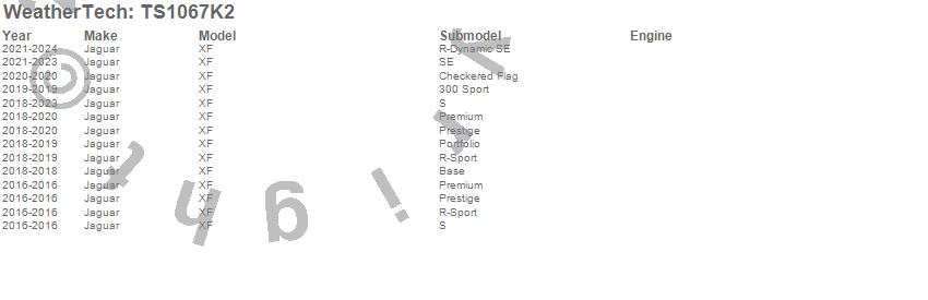 Below is an abbreviated list of applications for the WeatherTech SunShade Full Vehicle Kit.XF, Jaguar, 2024, 2023, 2022, 2021, 2020, 2019, 2018, 2016