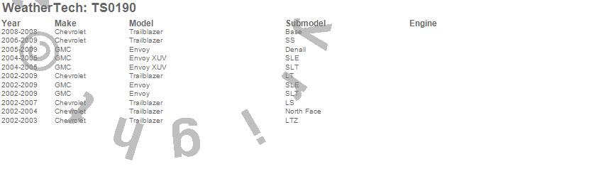 Below is an abbreviated list of applications for the WeatherTech SunShade.Envoy, Envoy XUV, Trailblazer, Chevrolet, GMC, 2009, 2008, 2007, 2006, 2005, 2004, 2003, 2002