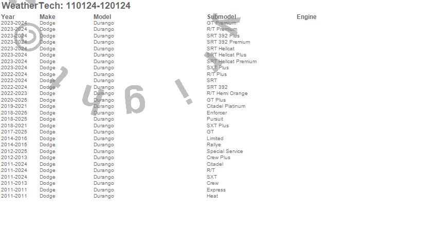 Below is an abbreviated list of applications for the MudFlap No-Drill DigitalFit MudFlap Kit.Durango, Dodge, 2026, 2025, 2024, 2023, 2022, 2021, 2020, 2019, 2018, 2017, 2016, 2015, 2014, 2013, 2012, 2011